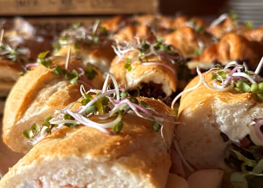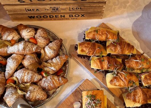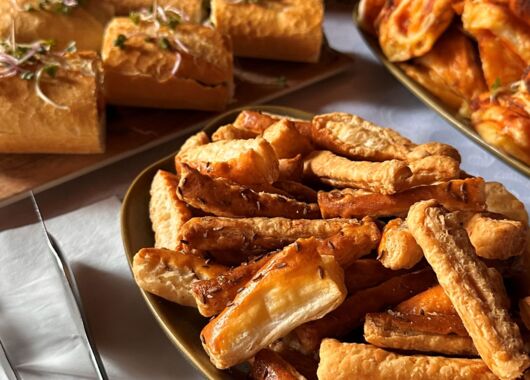 • Savoury pastries, sweet pastries: cinnamon snails, homemade strudel (poppy seed, walnut with apples), crackling, pizza cakes